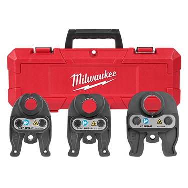 Replacement jaw kit for the Milwaukee M12™ FORCE LOGIC™ Press Tool, engineered for ½"-1" IPS carbon and stainless steel fittings. Delivers consistent press quality on Schedule 5-40 pipe while maintaining the tool's lightweight, one-handed design. Ideal for residential and light commercial plumbing applications requiring reliable, compact pressing solutions.