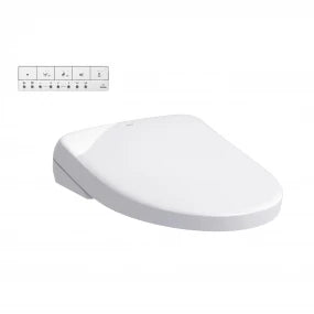 The TOTO WASHLET® S7 is an electronic bidet seat that replaces toilet paper with warm water cleansing at the touch of a button. It features five spray settings, a heated seat, air deodorizer, and nightlight. The advanced EWATER+® system automatically mists the wand and bowl to reduce cleaning chemicals, while PREMIST® technology wets the bowl surface for better waste removal. An illuminated remote with memory settings lets you save your preferences, and the auto-flush function eliminates the need to touch handles. The sleek, low-profile design integrates seamlessly with elongated toilet bowls. Includes all mounting hardware for installation.