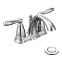 Give your home a timeless appeal with the MOEN Brantford 4 in. Centerset 2-Handle Low-Arc Bathroom Faucet that will offer the perfect stylish addition to your bathroom. Featured in a polished chrome finish that offers a highly-reflective, mirror-like shine to add a luxurious look to your space, this faucet boasts a traditional style that will complement a wide range of décors. With a 4 in. centerset design that allows for an easy installation, this beautiful accent piece will offer a dazzling, modern focal point in your bathroom. Equipped with metal drain assembly.