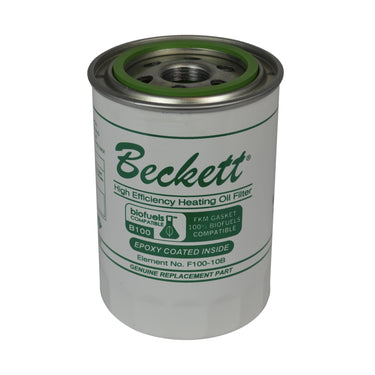 Westwood By Beckett spin-on style fuel oil filters for residential applications c/w cast aluminum top and epoxy coated, drawn steel, seamless one piece canister. All Westwood By Beckett residential spin-on filters are UL/cUL listed and are B5 or B100 (“B” versions) biofuel compatible depending on the model.